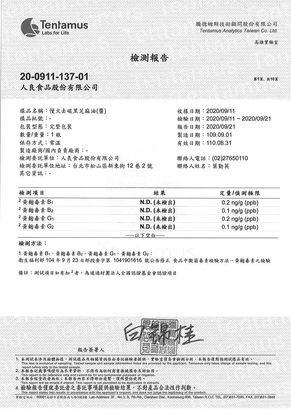 - 認證:通過黃麴毒素、農藥殘留安全檢驗