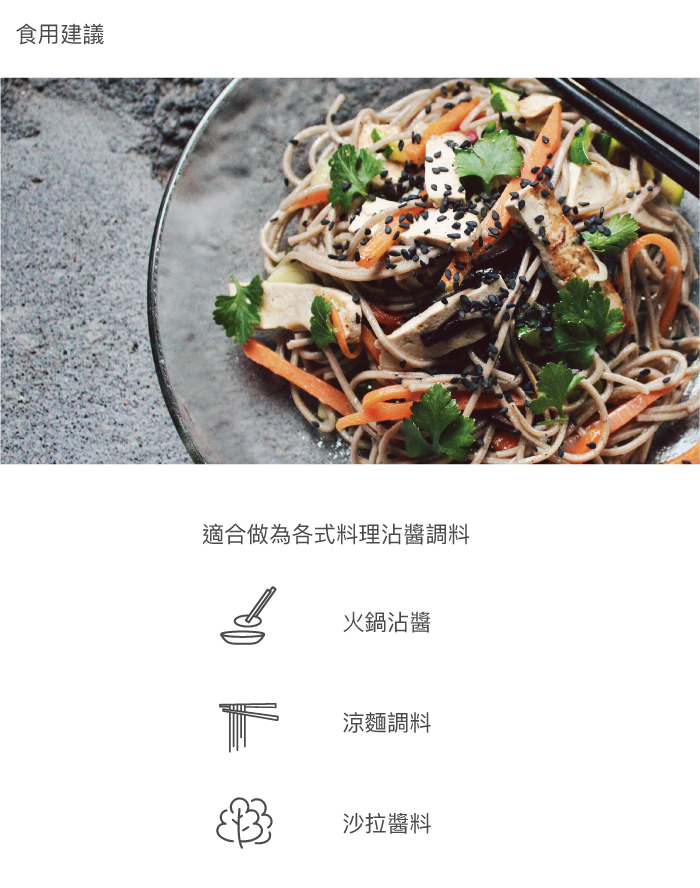 使用方式: 適合烘培、料理涼拌、醬料使用。